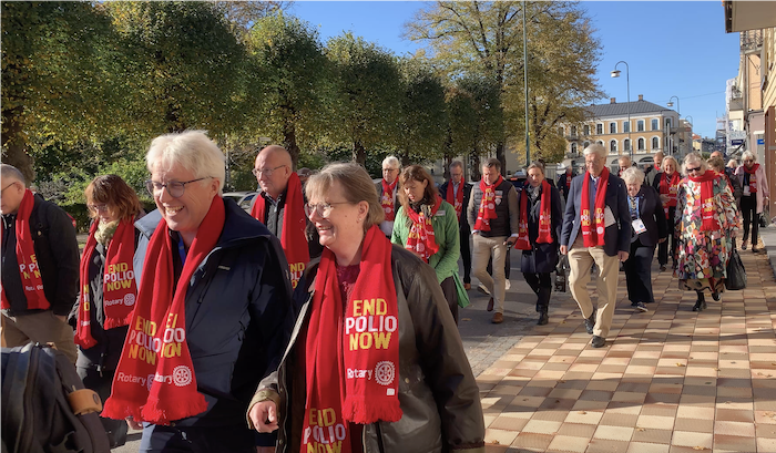 Helgen bjöd också på en flashmob mitt i city för att manifestera kampen för en poliofri värld. Hela Landskrona bäddades in i röda End Polio Now-halsdukar – en stark symbol för engagemang, gemenskap och hopp om en bättre morgondag.
