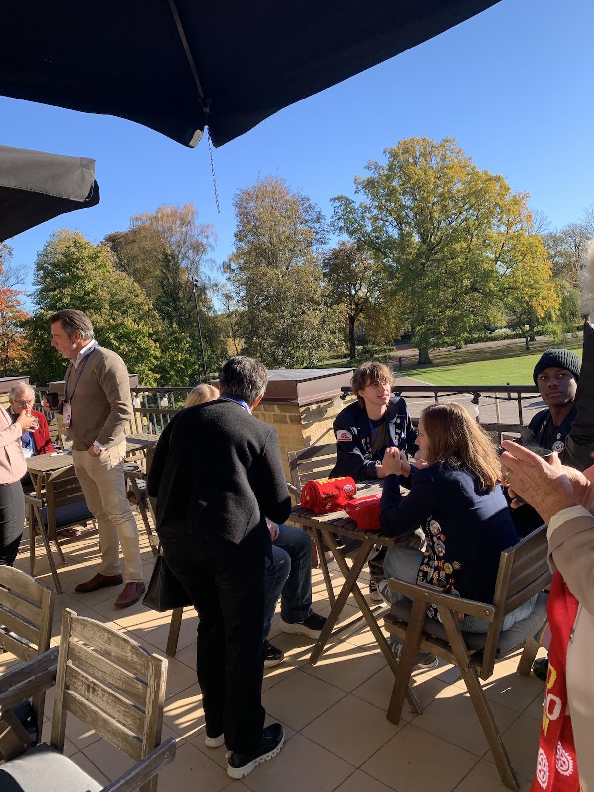 Ungdomsutbyte och mingel på teaterterassen