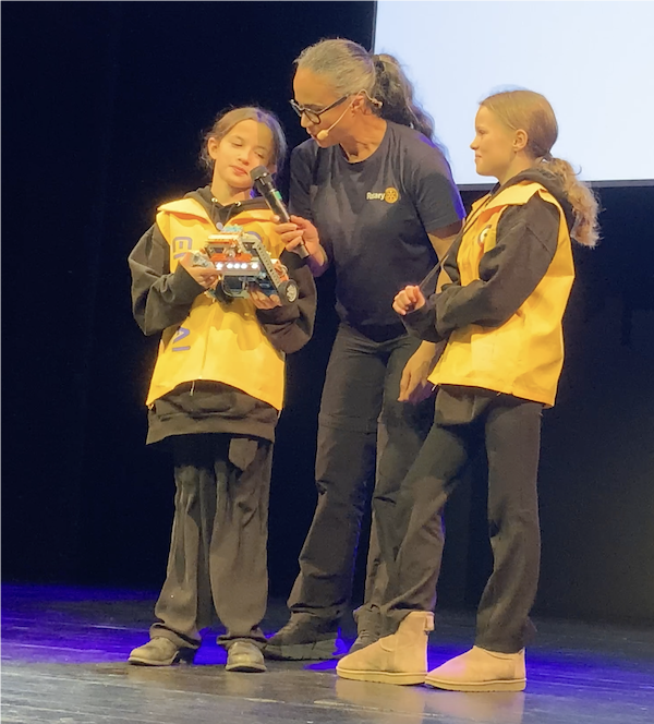 Morgondagens ingenjörer och robotbyggare intog scenen tillsammans med mentorn och rotarianen Leila Kahmmari från projektet Stream Scandinavia.