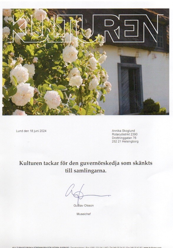 Den gamla guvernörskedjan i 2390 har nu arkiverats på Kulturen i Lund och kan beskådas där. Den består av 125 brickor i silver där guvernörernas namn respektive klubb ingraverats.